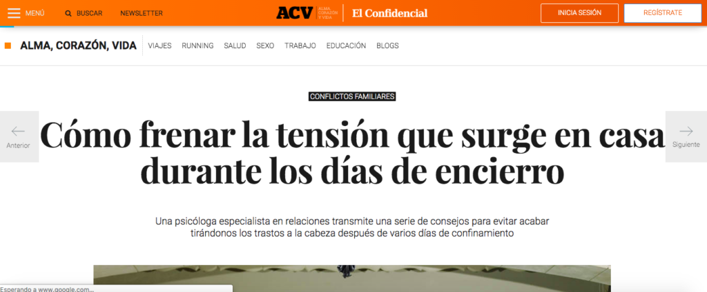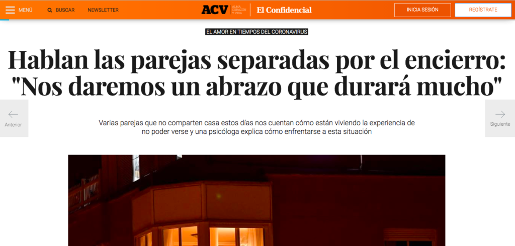 En este post os dejo los diferentes artículos en los que he colaborado a raíz del confinamiento. En ellos se habla sobre cómo llevar el encierro mejor si estás en pareja o en familia. O cómo las relaciones de pareja que lo están pasando separados, pueden sobrellevarlo mejor.